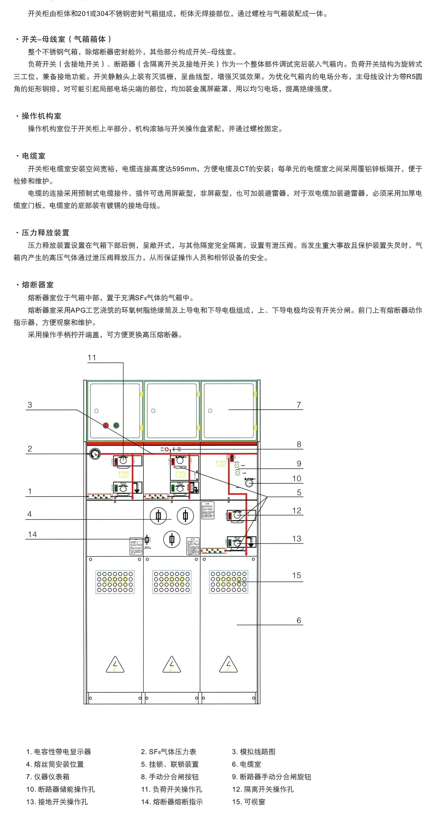 气箱防护等级 1P67,开关柜外壳防护等级:1P43,SF6气室不锈钢厚度3.0mm